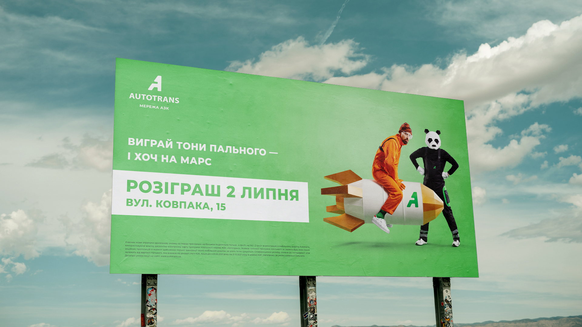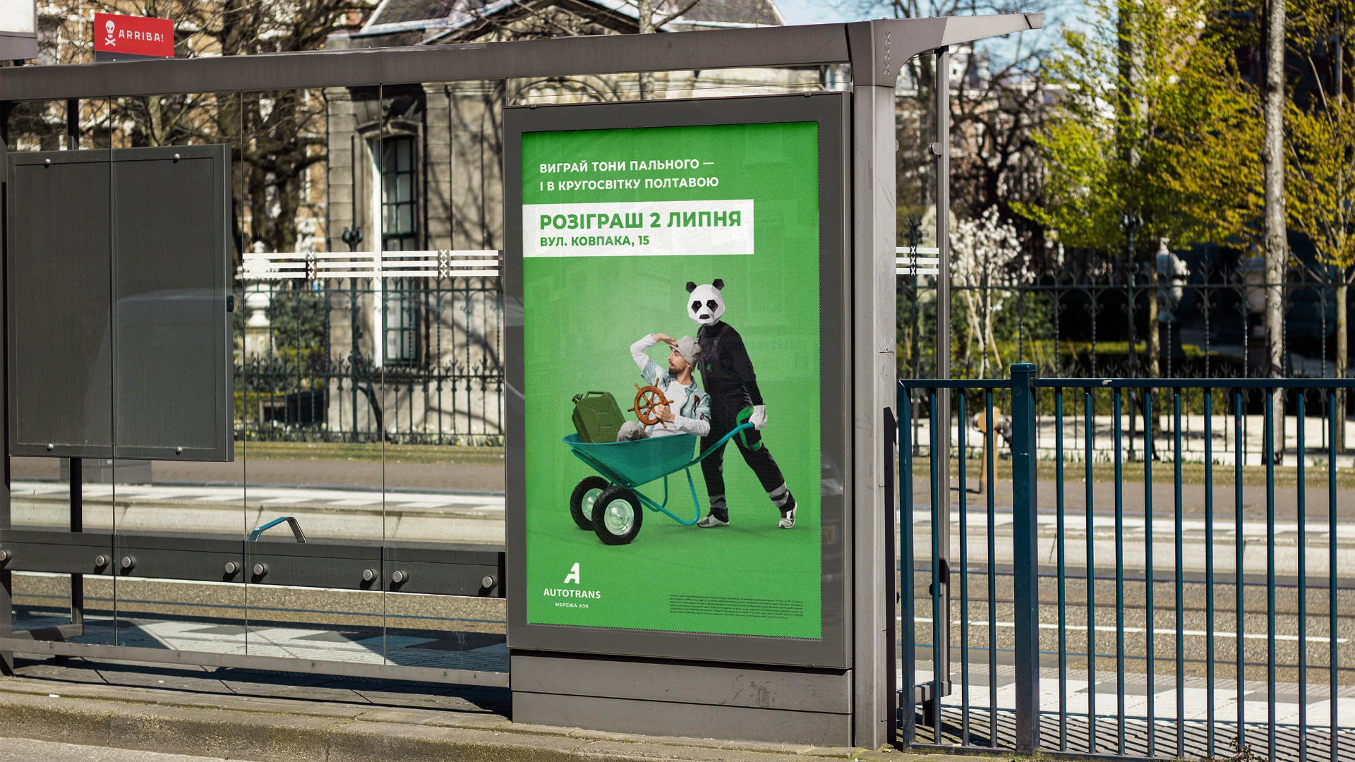 Окрім серії бюджетних відео, наш зірковий дует — Женя та панда — з’явилися у зовнішній рекламі. На рекламних площинах всередині та зовні заправок. У POS-матеріалах. На радіо, для якого ми створили цілий аудіосеріал, в якому Женя у своїй фірмовій манері розповідає телефоном про новинки «Автотрансу». Головне, що поєднувало всі ці носії — яскрава автентичність найполтавської заправки області.