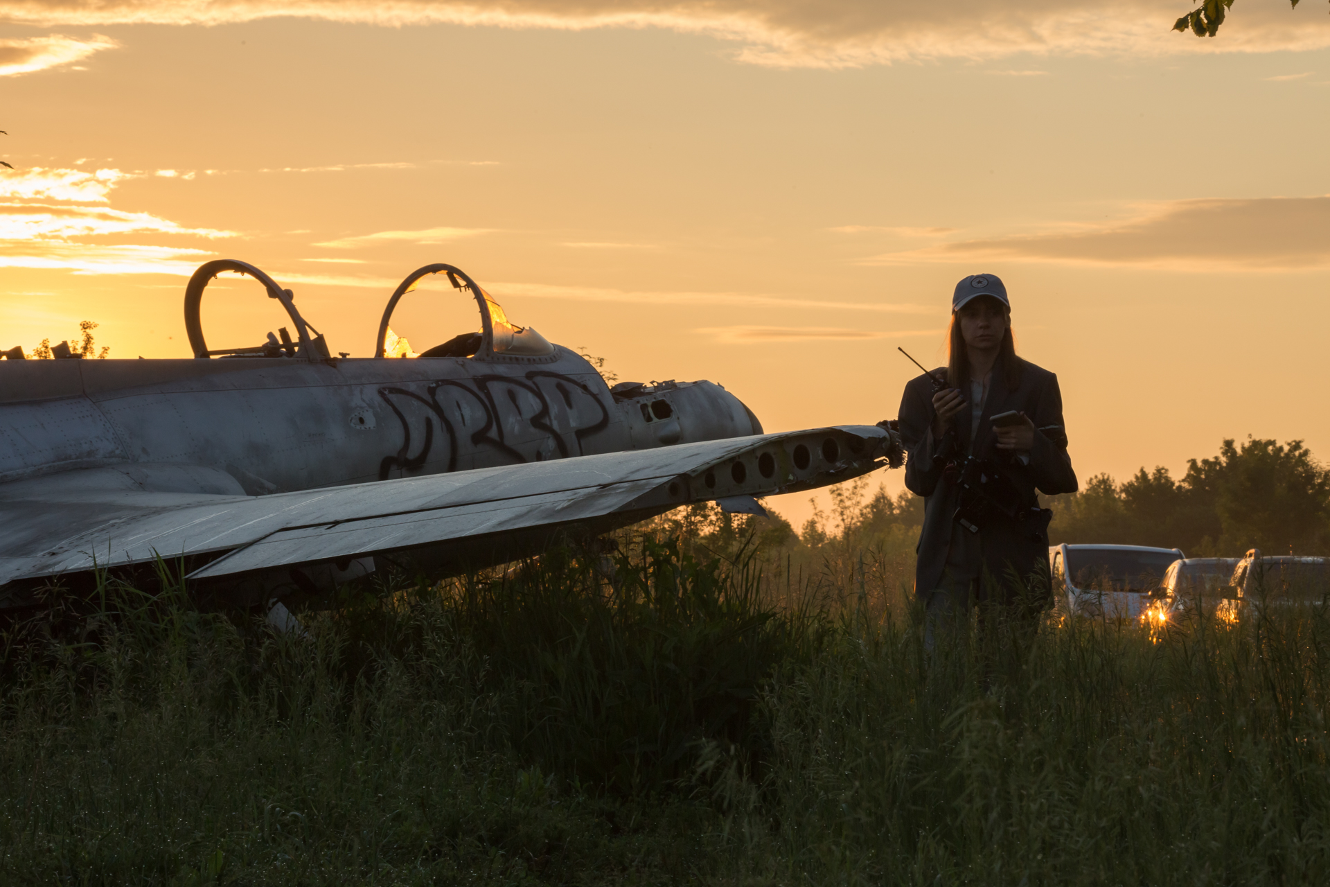 Женя в цьому кліпі грає роль оповідача, який розповідає глядачам історії про зруйновані стосунки. Аби передати цю ідею, ми зафільмували сцену з Женею в найвиразнішій локації — кладовищі літаків.